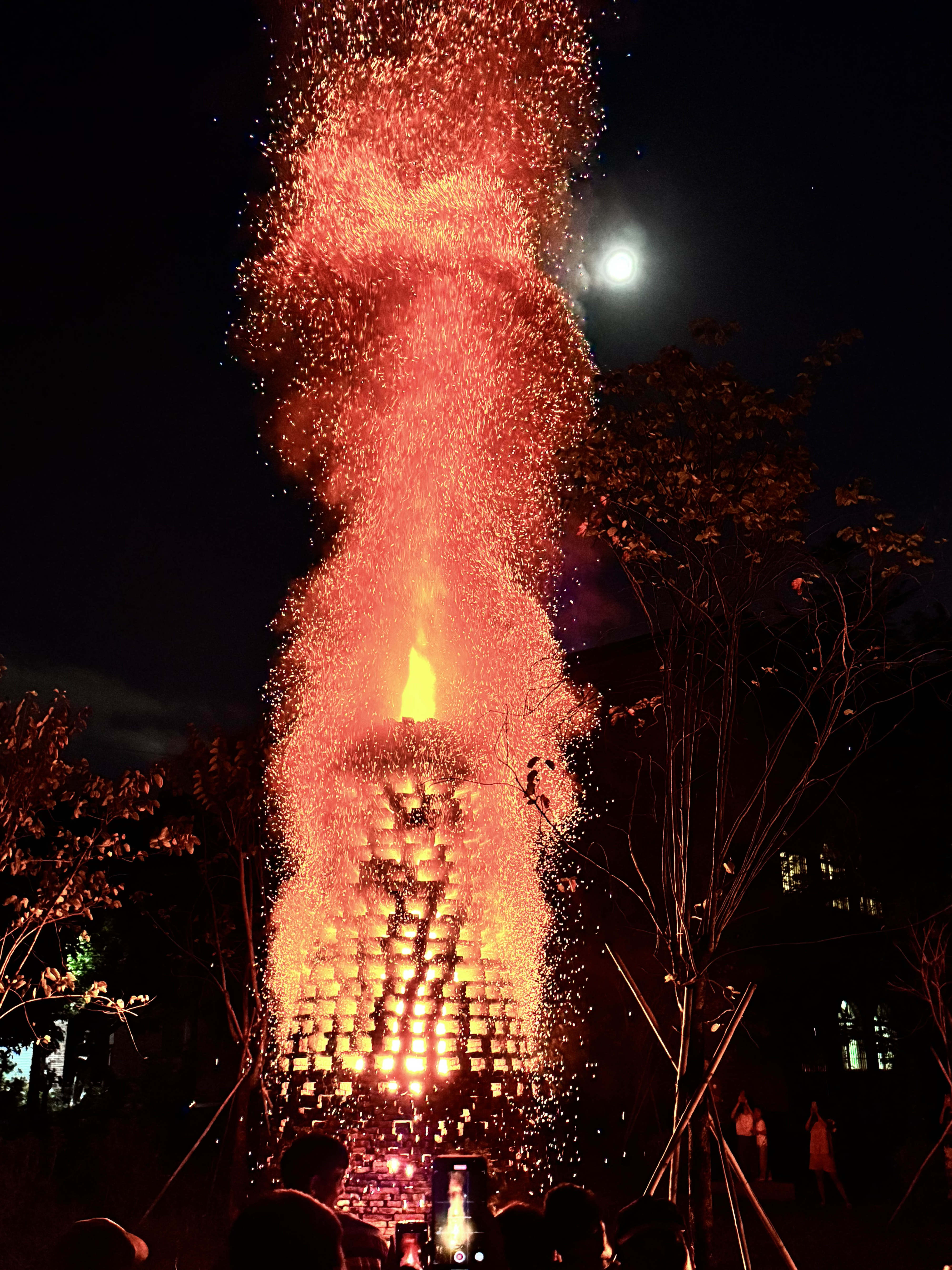 此外,塱头还以“耕读传家”底蕴为核心,在古村举办“趣游塱头耕读雅集”系列活动,设置耕读体验区让市民亲手参与稻田识谷、古法舂米,感受农耕智慧。雅集展示区汇集书法创作、古籍拓印,非遗传承人现场教学;亲子共读区精选农耕主题绘本,实现传统耕读文化的现代化表达。中秋当天,“烧禾楼”民俗活动更是将氛围推向高潮,搭配花样粤语音乐会、舞狮梅花桩表演、古风汉服巡游、赏灯笼猜灯谜等活动,成为双节期间古村的压轴好戏。