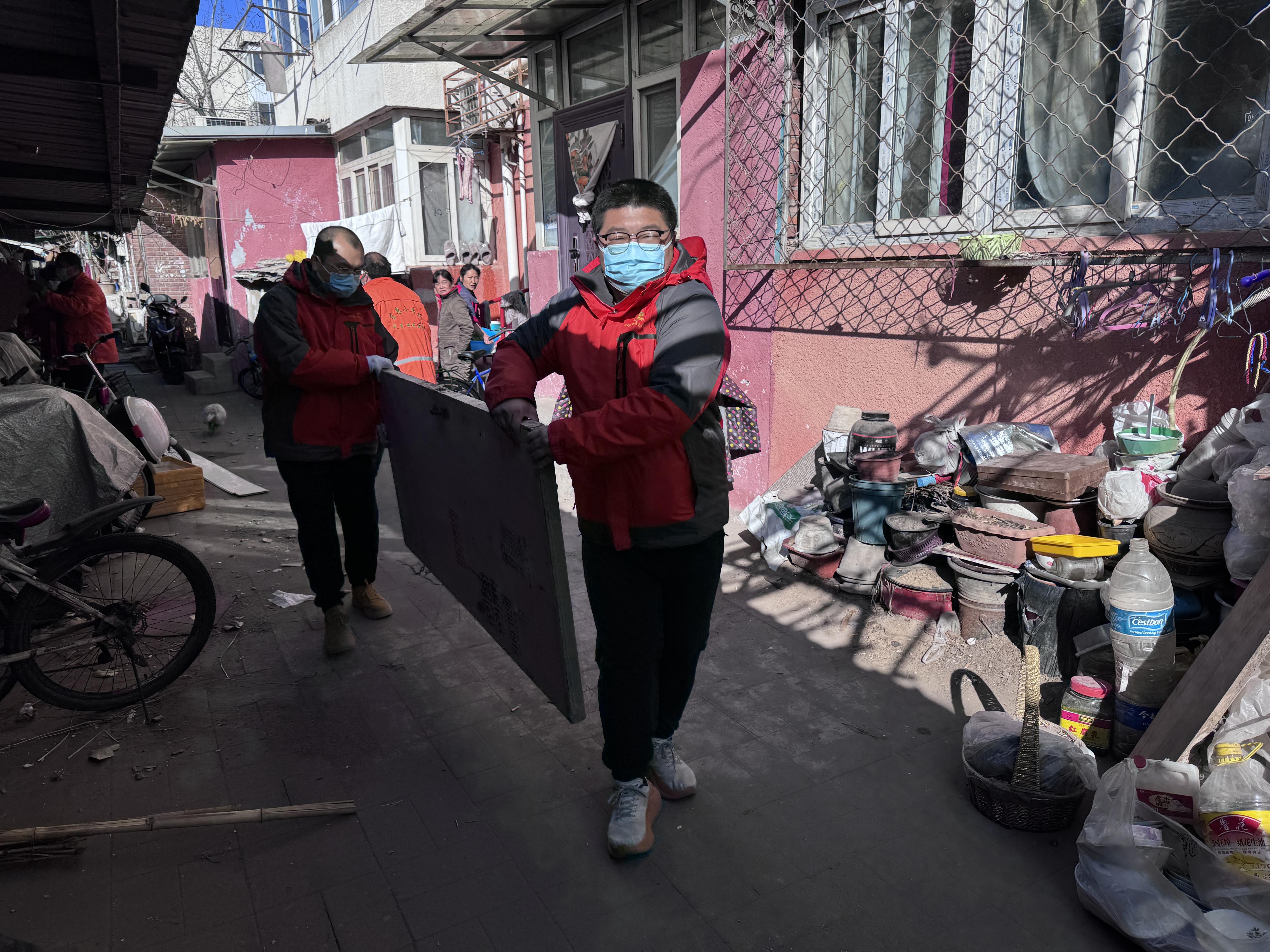 工作人员清理堆物堆料。