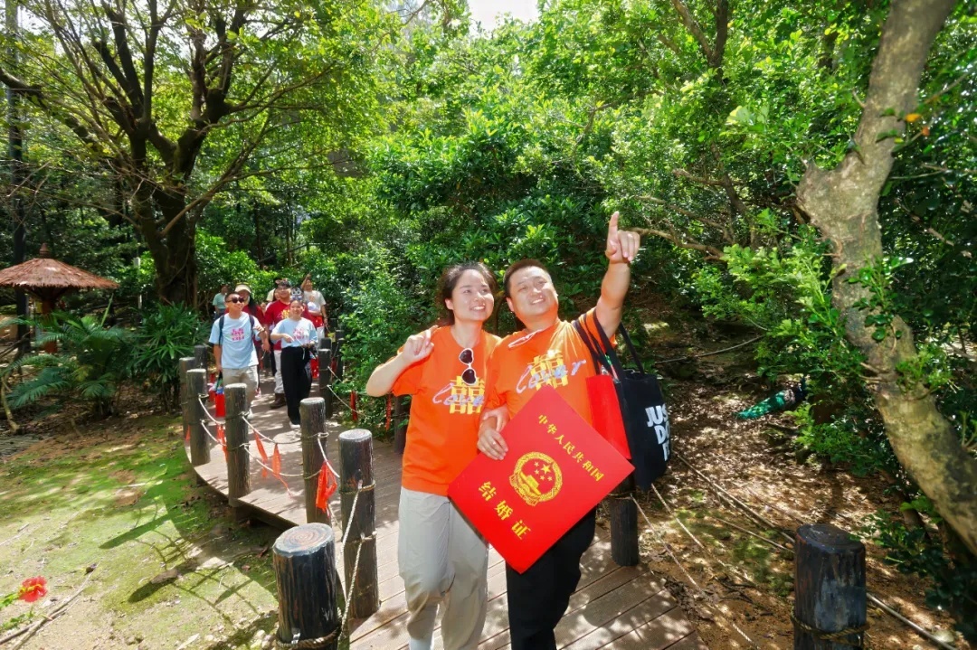 新人们按照打卡地图前往鸟园、肯德基和丛林飞跃、可憩大草坪拍照留念,携手续写“云山恋曲”。同时,他们也收获了景区精心准备的甜蜜福利,在青山绿水间享受专属浪漫时光,让白云山成为他们爱情的见证者。