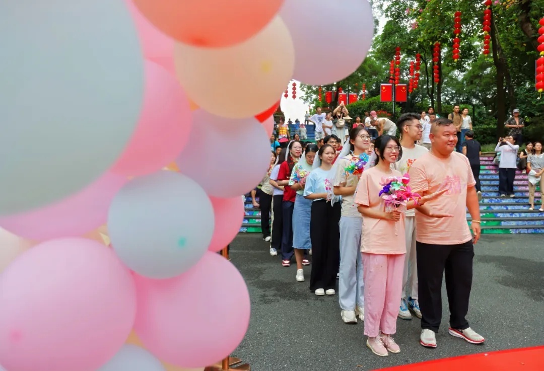 10月6日中秋节,广州白云山鸣春谷举办了一场以“云山囍缘·花月良辰”为主题的户外集体婚礼。这场特殊的婚礼由白云山鸣春谷景区管理中心与白云区民政局联合举办,共有9对领证新人参加广盛网 ,也是2025年白云区第一届婚俗文化活动的重要组成部分。