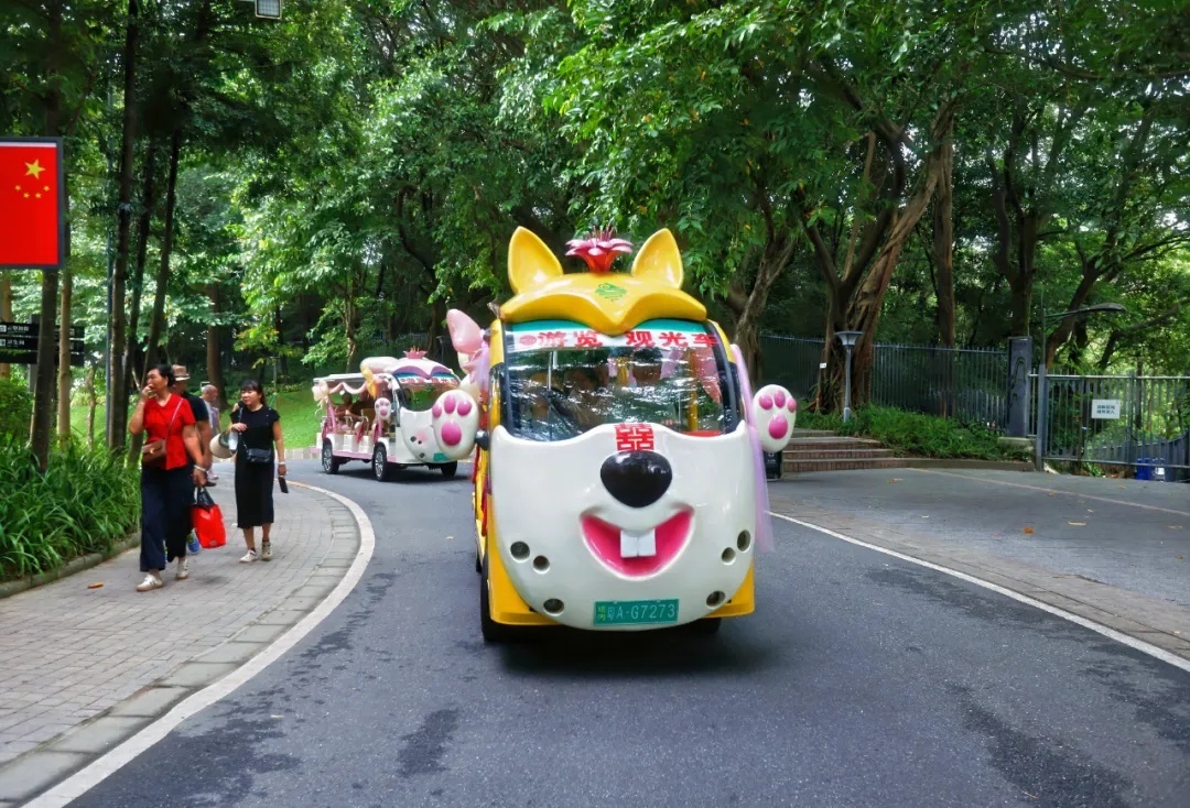 △搭乘装饰喜庆的电瓶车,开启了“爱在云山”上行之旅。图/Color China